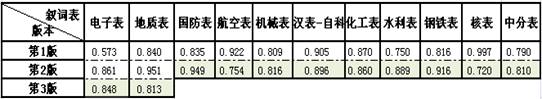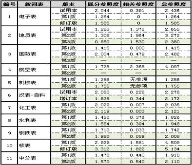 表6 不同版本叙词表的参照度
