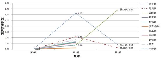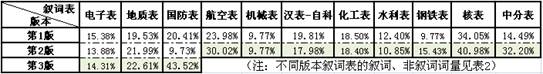 图1 不同版本叙词表收词增长比例