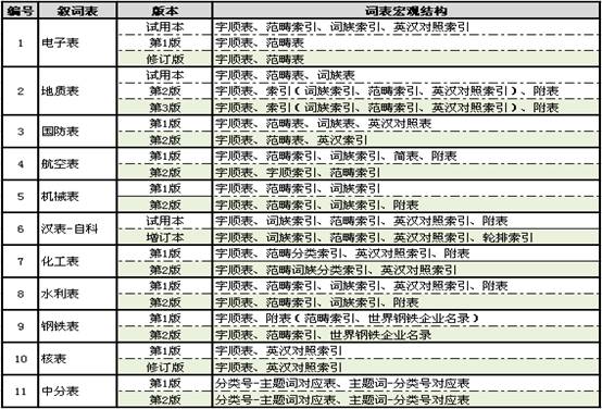 表3中,《电子表》的修订版取消了试用版的词族索引和英汉对照索引;新版《国防表》取消了词族表;《水利表》取消了英汉对照索引;《机械表》修订版本取消了附表;《汉表-自科》修订版本取消了附表,增加了轮排索引;新版《化工表》也取消了附表,同时“范畴分类索引”命名上改成了“范畴词族分类索引”,将该表中范畴索引和词族索引二者合一的独特之处才从字面上体现了出来,其意义在于打破旧的框框,从传统粗略的范畴表引入一个详细的分类索引。然我国叙词语言也应向着分类主题一体化的方向发展,实现词表的结构优化和检索功能的强化。《中分表》就是将分类体系与叙词体系相融合的典范,将传统的宏观结构简化为分类-主题对应表、主题-分类对应表两大部分,其功能大大优化,便于检索,便于分类标引和主题标引的相互转换。